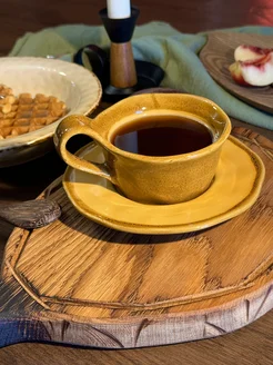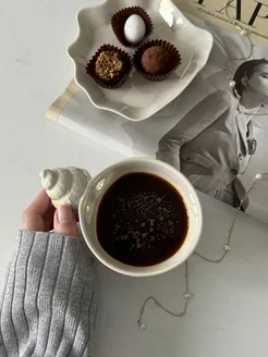 Керамическая перламутровая кружка с блюдцем "Ракушка"