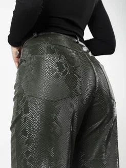 Брюки кожаные клеш классические утеплённые