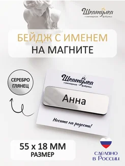 Бейдж с именем "Анна" глянцевое серебро с магнитом