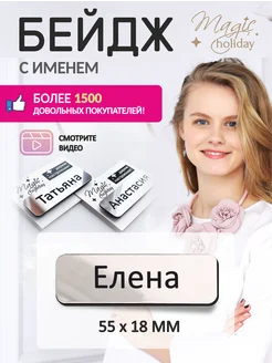 Бейдж с именем "Елена" глянцевое серебро с магнитом