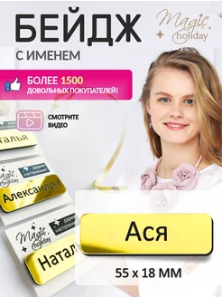 Бейдж с именем "Анастасия" глянцевое серебро с магнитом