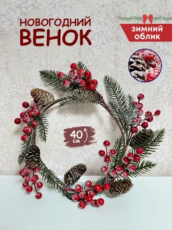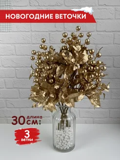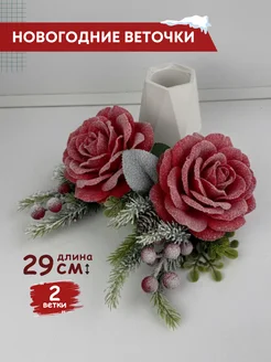 Новогодняя композиция веток и ягодами со снежным эффектом