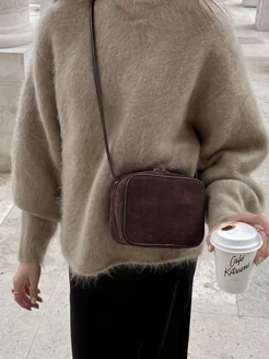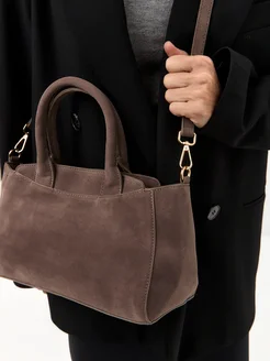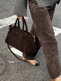 Замшевая сумка на плечо хобо шоппер мягкая большая стильная