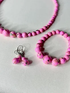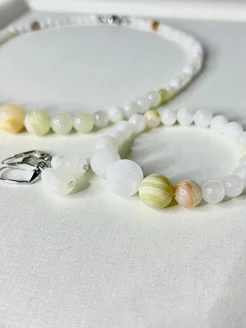 Комплект серьги, бусы и браслет из натурального варисцита
