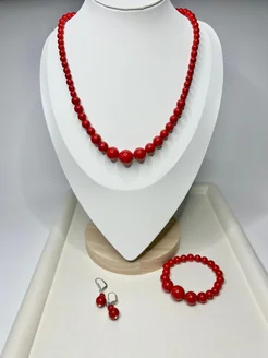 Комплект серьги, бусы и браслет из натурального коралла