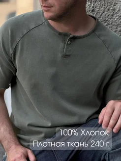 Зеленая футболка Хенли с воротником на пуговице