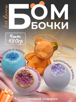 Бомбочки для ванны бурлящие с твердой пеной. Набор СПА, 4 шт