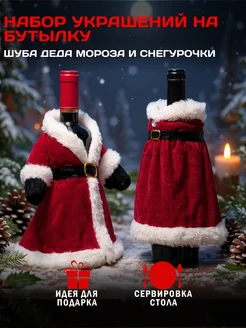 Новогоднее украшение на бутылку шуба деда мороза 2 шт