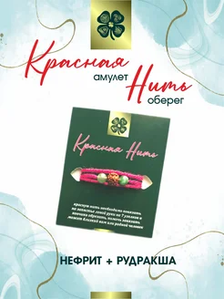 Красная нить на руку Нефрит + Рудракша
