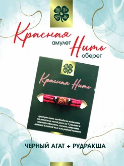Красная нить на руку Черный агат + Рудракша