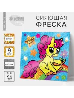 Фреска с блестками и фольгой «Пони» + 9 цветов песка по 4 г