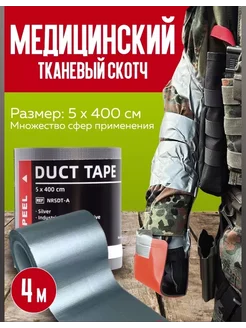 Медицинский армированный тактический скотч в аптечку 4 метра