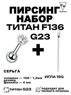 Пирсинг Штанга внешняя резьба 1.6мм титан G23 - F136