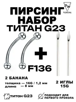 Пирсинг украшение банан d-1.2мм (6-14) мм титан g23-F136