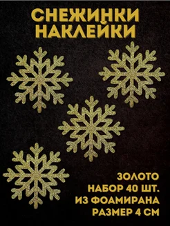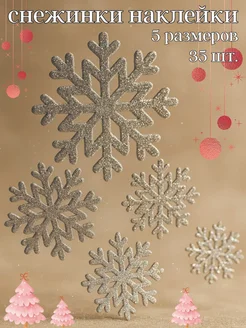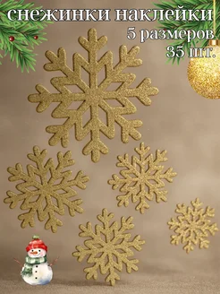 Снежинки наклейки на окна из фоамирана 35 шт. золото