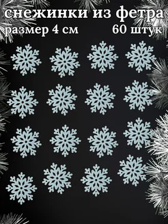 Снежинки из фетра голубые 60 шт. для рукоделия и творчества