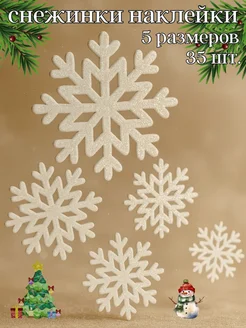 Снежинки наклейки из фоамирана с блеском 35 шт. белые