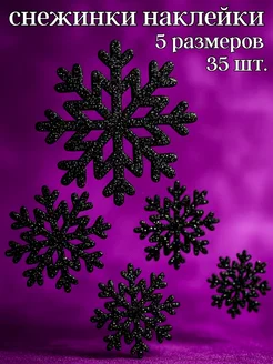 Снежинки наклейки на окна из фоамирана 35 шт. черные