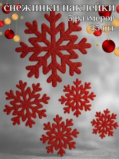 Снежинки наклейки на окна из фоамирана 35 шт. красные