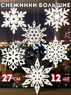 Снежинки подвесные большие белые 27 см, набор 12 шт