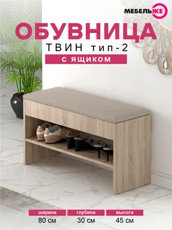 Обувница в прихожую Твин 2 Дуб Сонома Велюр Бежевый