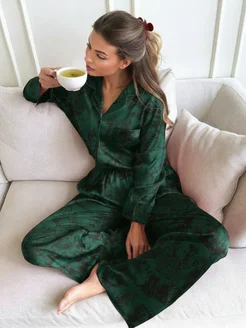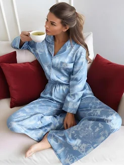 Пижама женская шелковая со штанами и рубашкой