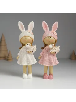 Сувенир полистоун "Девочка в шапке с ушами и цветочками, с б