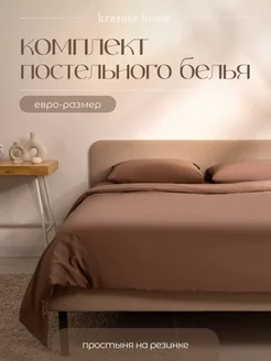 Комплект постельного белья, Семейный Дуэт, бежевый