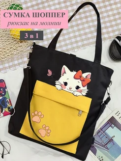 Сумка шоппер для девочки рюкзак на молнии с котиком лапка