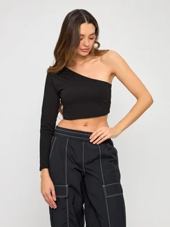 Кроп топ укороченный с длинным рукавом на одно плечо
