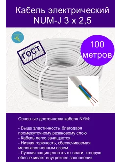 Кабель силовой NYM 3x2,5 ГОСТ, 100 метров