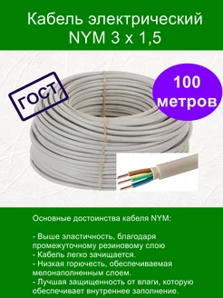 Кабель силовой NYM 3x1,5 ГОСТ, 100 метров
