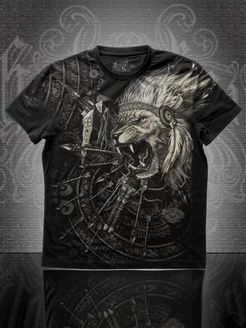 Футболка мужская с принтом черная хлопок RB "Лев команчи"