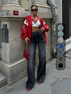 Широкие джинсы багги с высокой посадкой темно серые клеш