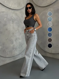 Широкие джинсы багги с высокой посадкой светло серые клеш