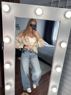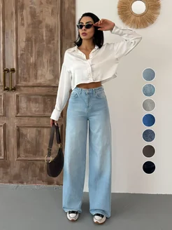 Джинсы женские широкие с высокой посадкой голубые багги