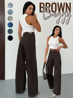Джинсы широкие багги прямые с высокой посадкой коричневые