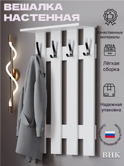 Вешалка настенная в прихожую, 60см, цвет- белая