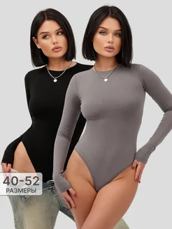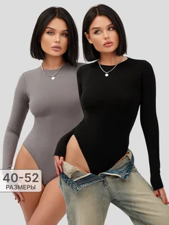 Боди с длинным рукавом утягивающее с вырезом для пальца