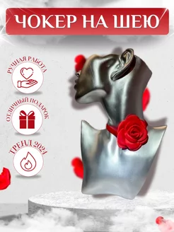 Чокер на шею бархатный с цветком красный