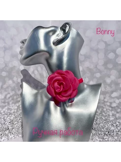 Чокер цветок на шею бархатный малиновый