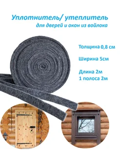 Утеплитель уплотнитель для окон и дверей, войлок искусств 2м