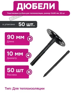 Дюбель для теплоизоляции 10х90 мм пластиковый гвоздь черный