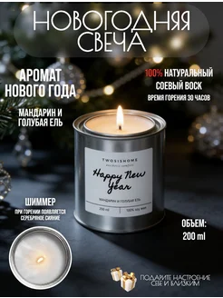 Новогодняя свеча в жестяной банке Мандарин и голубая ель
