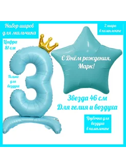 Шар с именем Марк. Цифра 3. Три года. На День рождения