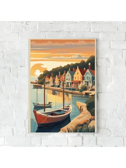 Постер 40х60 без рамы "Винтажный постер прибрежного города"