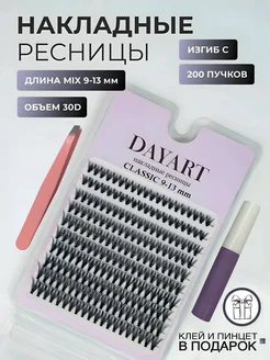Накладные ресницы пучки classic 30D 9-13 мм с клеем