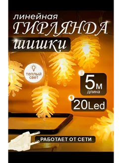 Гирлянда новогодняя интерьерная Шишки теплый свет