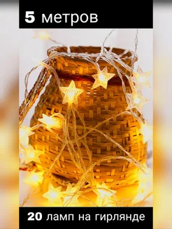 Гирлянда новогодняя интерьерная Звездочки теплый свет