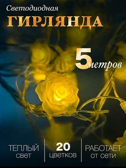 Гирлянда новогодняя интерьерная Цветок Роза теплый свет
